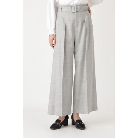 洗練されたムードが引き立つワイドパンツ。きれいめな起毛素材で仕上げており、オフィスシーンにも対応できます。センタープレスが入った、シンプルなワイドラインでゆとりがある穿き心地が魅力。共布ベルトを添えているので細身トップスをインから、ゆるニットをアウト、ロング丈のトップスをアウトする着こなしでシルエットの変化を楽しめます。