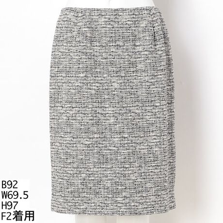 伸縮性のあるツイード生地のタイトスカートはセレモニーシーンの多い春には欠かせない定番のアイテムです。ウエスト部分にはゴムを入れ、伸縮性を持たせながらもスッキリと仕上げています。同素材のジャケットと組み合わせて、スーツとしての着用はもちろんですが、シンプルなデザインなので異素材のアイテムとも相性がよく、幅広いコーディネイトをお楽しみいただけます。