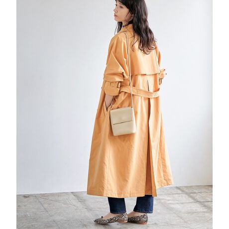 着丈とバストが大きく違う2サイズ展開のトレンチコート。コンパクトに着たい方には36サイズ、長めにゆるっとオーバーサイズで着たい方には38サイズと、お客様のお好みでお選びいただける2サイズ展開となっています。後ろにケープバックと言われるヨークを付けて、後ろ姿に動きを出しました。シワも気になりにくく、シーズンレスで着ていただける素材を使用。定番のベージュとオレンジの2色展開となっています。ワントーンの合わせにすると、より今年らしい着こなしに。