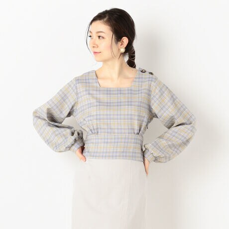 スクエアネックバックリボンチェックブラウ