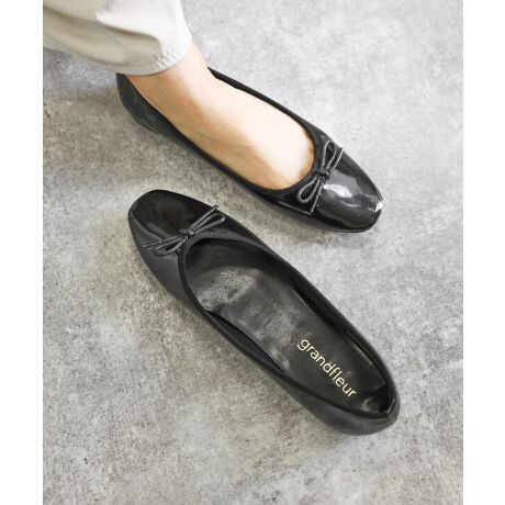 グランドフルールの【22.0cm〜26.5cm】【晴雨兼用】スクエアトゥのフラットレインパンプス
