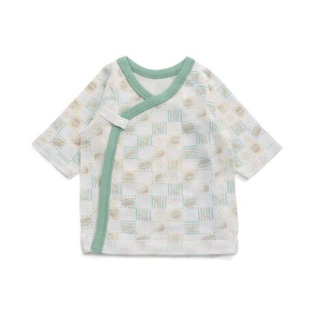 apres les cours(アプレレクール)の肌着「パン柄ベビー短肌着」は、ベビーらしい素材にナチュラルで優しいカラーが特徴的。出産のお祝いにもおすすめです!