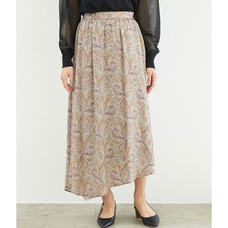 優しいパステルトーンが春らしい、ペイズリープリントのロングスカートです。
