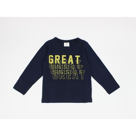 春に大活躍のロンT。おしゃれなGREATロゴプリトです。身頃は綿100%で肌に優しい仕上がりです。サイズはベビーサイズからキッズサイズまで取り揃えており、80cmと90cmは肩あき仕様です。ネイビーとグレーの2色展開です。新作春物の商品です。