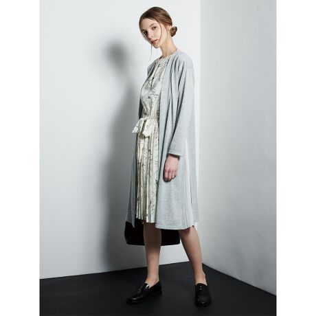 スパン天竺サイドプリーツ切替ロングカーディガン
