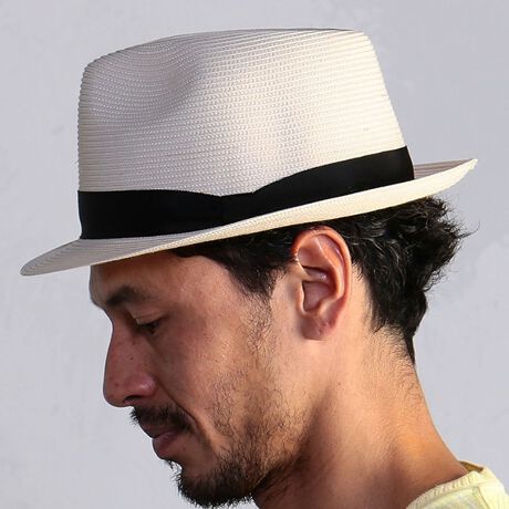 ポリプロピレンを使用している為、通常のストローハットよりも水に強い点と、くにゃくにゃと曲がる為持ち運びしやすい点が特徴です。