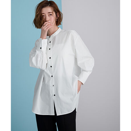 背中のボタンデザインで後ろ姿までおしゃれに決まるバックスリットチュニックシャツ。