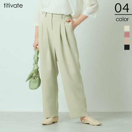 落ち感がある上品な素材のハイウエストワイドパンツ。