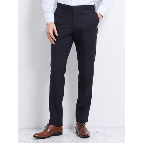 ウォッシャブルストレッチ ウール混スリムフィット ノータックスラックス 紺シャドーチェック
