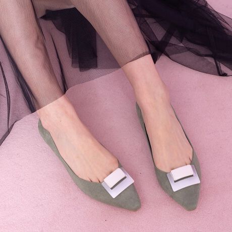 バックルがワンポイントになったフラットパンプス。おすすめカラーは2020年注目カラーのミント色!ポインテッドトゥで足元をスッキリと魅せてくれます!インソールは『ラウナレア』こだわりのふわふわマシュマロインソール!低反発と高反発のダブルクッションで長時間履いても足が痛くなりにくく歩きやすいです◎