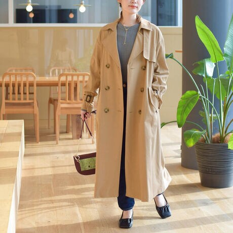 シャリ感のある麻混の生地を使用したビッグシルエットのトレンチコート。麻独特の表面感が程よいカジュアルさをプラスしてくれます。