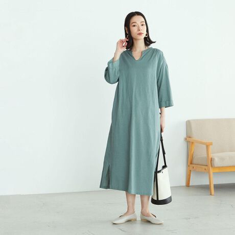 《リネン》 スキッパー ワンピース アッパッパ(ONIGIRI)