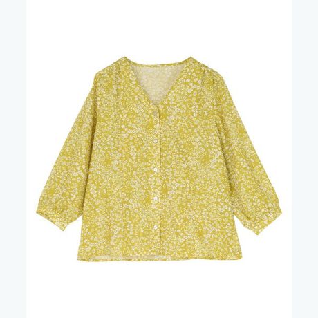 小花柄のさらっとした生地が上品なギャザーブラウス。
