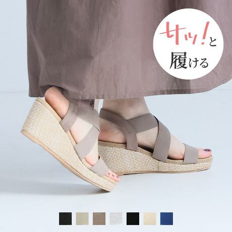 26春夏新作カラー追加*柔らかウェッジソール&ジュート柄ふかふかクッション7cmゴムフィットサンダル