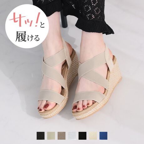 26春夏新作カラー追加*柔らかウェッジソール&ジュート柄ふかふかクッション7cmゴムフィットサンダル