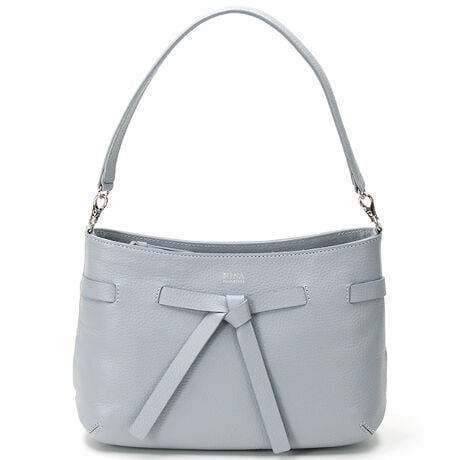 ニナ・ニナ リッチの結んだ切りっぱなしのボウタイがポイントの手提げバッグです。柔らかく仕上げた型押しのシュリンクレザーを使用し、二つに折った手紐は肩にかけた時に重さを感じにくい仕様です。フェミニンですが甘すぎないデザインで、通勤から休日のオフスタイルまで幅広く使えます。
