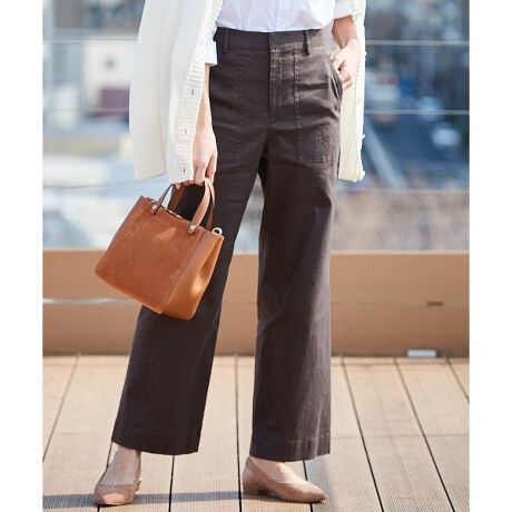 光沢感のある上品な表情が魅力。カジュアルすぎない麻混のワイドパンツ