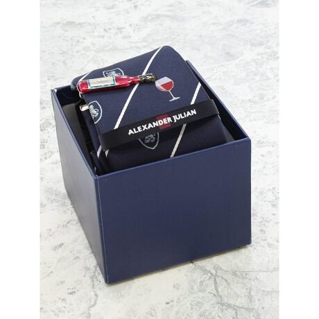 アレキサンダージュリアン ネクタイ&タイバーセット ワインロイヤルクレスト