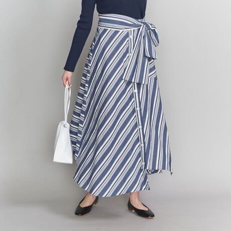 爽やかなストライプ柄が目を引く、春らしいロングスカート。
