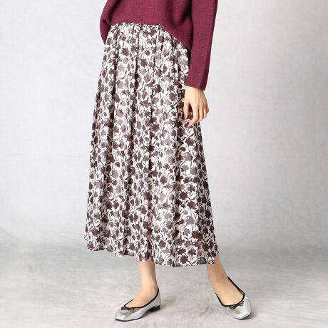 ・ウエストがゴム仕様の、はき心地のよい分量感のあるフレアースカート。