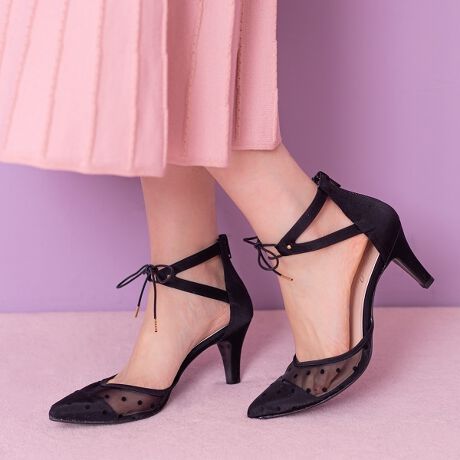 【21.5-25cm】レースアップセパレートパンプス(7cmヒール)