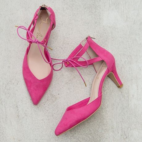 リボンデザインでしっかり足首をホールドしてくれ、バックジップ仕様で着脱も楽々です◎