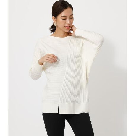 ルーズなシルエットがポイントのニットチュニックです。スタイルを選らばないシルエット感なので色々なお客様に着て頂ける万能着回しアイテムです。左右違う編み柄を使用する事で、視覚的にスタイルアップ効果のあるデザインがポイントです。やや緩めなドルマンシルエットなのでコートの中に着て頂いても、着やすいシルエットになっています。