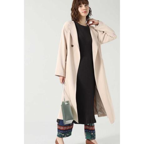 上品な雰囲気のノーカラーデザインコート。襟が折り返しになっているのでトレンチのような印象で着られる1枚です。スカートやワンピースともバランスが取りやすい丈感も嬉しいポイント。ウエストをベルトでマークしてメリハリをつけた着こなしも楽しめます。