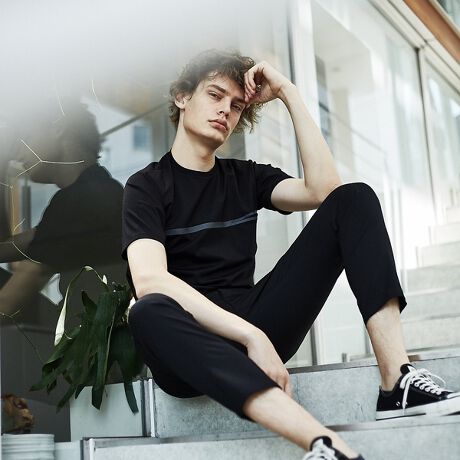 ジョガーパンツやトラックパンツと合わせたスポーツスタイルはもちろん、セットアップのインナーTシャツにもオススメです。