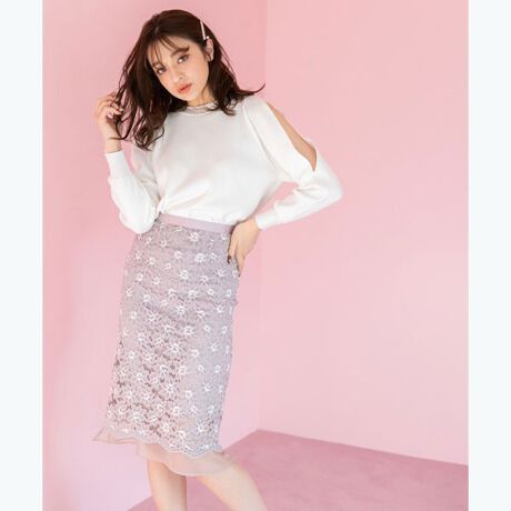 繊細なコードレースと裏地を2配色で重ねたエレガントなスカート。