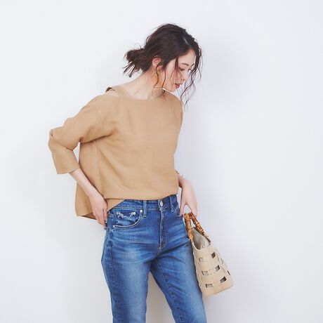 麻×キュプラ素材なので微光沢感としなやかさがプラスされた、今年らしいアイテム。