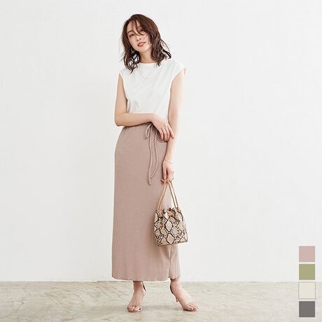 すらっとした縦長ラインとリブ生地でスタイルアップも期待できるナロースカート。