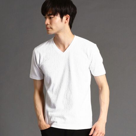 凹凸感が目を引く雰囲気のあるランダムジャカ−ドTシャツです。片染めで杢調に見せることにより柄感を引き立たせています。モノトーンの落ち着いた色味ながら、1枚で着用しても十分に存在感があり、ジャケットやブルゾンのインナ−としても重宝するアイテムに仕上がっています。