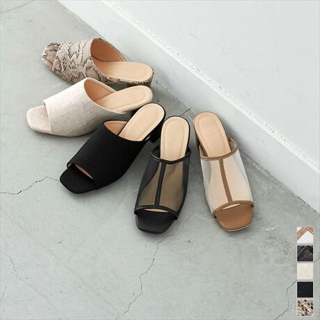 オープントゥスクエアミュールサンダル