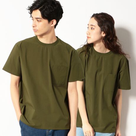 布帛地を使用したワイドシルエットのポケット付Tシャツです。