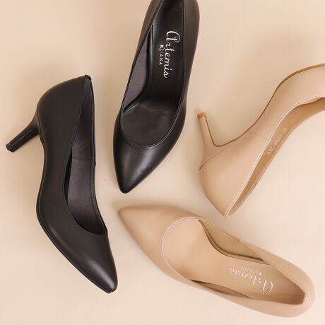 コーディネートを選ばないシンプルなプレーンパンプス。