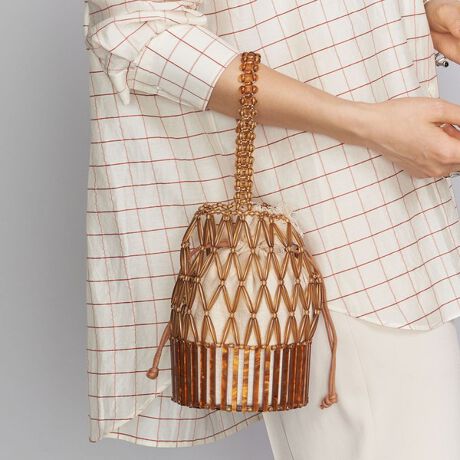 インナーにはドロスト仕様の巾着が付き、防犯性に加えて、よりビーズのデザインを際立ててくれます。