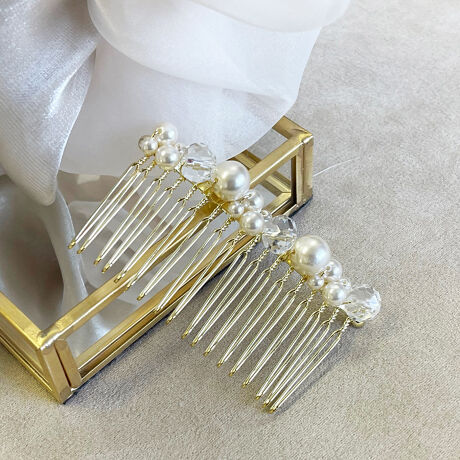 ナツコ・グレースのパールコーム。サイズミックスのパールとクリアビーズが上品なヘアスタイルを作ってくれます。入学式・卒業式・結婚式などのフォーマルシーンでのご使用はもちろん、ギフトとしても喜ばれるアイテムです。[型番:HA-308]