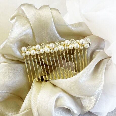ナツコ・グレースのパールコーム。サイズミックスのパールとクリアビーズが上品なヘアスタイルを作ってくれます。入学式・卒業式・結婚式などのフォーマルシーンでのご使用はもちろん、ギフトとしても喜ばれるアイテムです。[型番:HA-309]