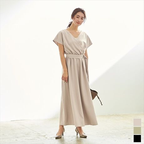 ベルト付カシュクールロングワンピース