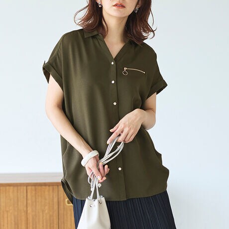 スキッパーデザインが、顔回りをすっきり見せてくれます。