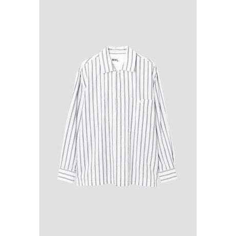 [型番:5960150512]高密度に織られたコットンリネン素材を使用したワイドピッチのストライプシャツ。ボクシーなシルエット、低い位置に配置された大きなパッチポケットが目を引くデザイン。※こちらはメンズの商品です。