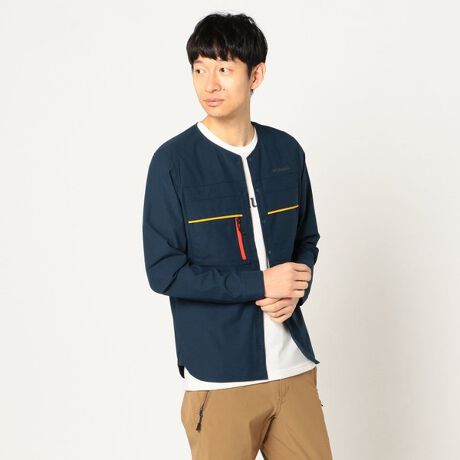 清涼感のあるニット素材がもたらすストレッチ性や軽量感がさらっとしたやわらかな着心地のトレッキングシャツ。吸水速乾性もあり、汗をかいても乾きが早く快適です。さらに紫外線カット効果も高く、日焼け防止にも役立ちます。左右胸のマチ付きポケットは、地図やスマートフォン収納に便利です。右胸ポケットは、ファスナーでサイドからのアクセスも可能。ボタンはすべてスナップボタンなので、着脱も容易です。ノーカラーデザインにより新しいスタイルを楽しめるトレッキングシャツです。【仕様】●左右胸のマチ付きポケット(右ポケットはサイドファスナーからも出し入れ可能)【おすすめシーン】登山、トレッキング、ハイキング