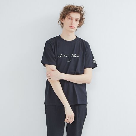 アメリカの画家、ポール・ジャクソン・ポロックのサインをプリント。袖に施したプリントがさり気ないアクセントになっています。