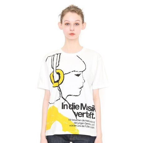 風合いの良い天竺を使用したベーシック型のTシャツ。「School Girl Bye Bye」ヘッドフォンで音楽を聞く女性の横顔、どこかで見たデジャブ的な風景。物思いに耽っているような表情が印象的。ティーンエイジのセンチメンタルな感覚が呼び起こされる、甘くせつないイラストレーションです。「ご使用に関する注意」 ●この商品は染料の特性上、雨や汗などによる水濡れ、摩擦が加わる状況での使用により、色落ちや色移りする可能性がございますので、十分ご注意の上ご使用下さい。●洗濯の際は、他の衣類と分けて洗って下さい。また、洗濯後は時間を置かず、形を整え陰干しして下さい。※商品画像と実物では多少色味に違いがある場合がございますので予めご了承下さい。※発売日や販売状況は店舗によって異なります。