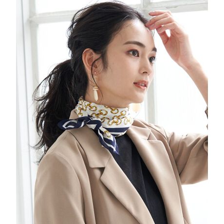 シンプルなトップスのアクセントとして、首元に巻いてお使いいただけます。
