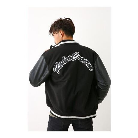 [型番:421CAW30-1350]中綿入りのメルトン風スタジャン。フロントをファスナー仕様にする事で、シンプルでありシャープな印象に。バックはフェイクレザーのロゴ刺繍がポイント。