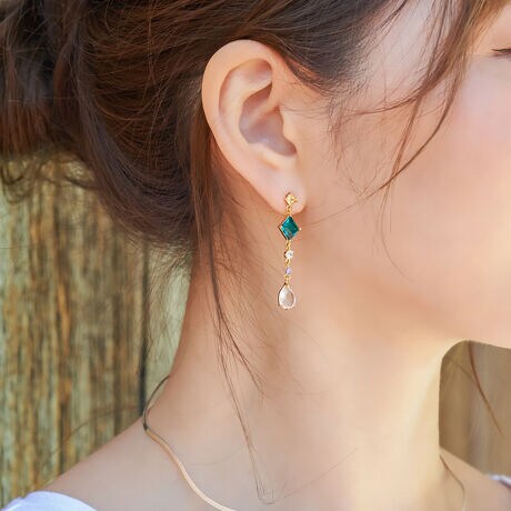 揺れるたびに透明感のあるカラーガラスが煌めき、耳もとを華やかな印象に。