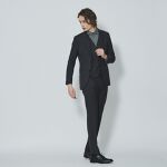 ビジネスシーンでの活躍はもちろん、ファッション性も高くデザインされていてインナーの合わせ方によって幅広いコーディネートがお楽しみいただけます。どんなシーンでも活躍するソリッドカラー展開。同素材ベスト・ジャケットを合わせたセットアップに対応しています。(ベスト品番:00018031100)(パンツ品番:00018052100)
