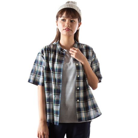 特殊セラミック繊維による遮熱効果で衣服内温度-3℃を実現した「コカゲシールド」素材の半袖チェックシャツ。紫外線を遮断することにより、淡色でも高いUV遮蔽率を発揮します。部分収縮糸によるナチュラルな素材感とバンドカラーで清涼感を演出。ゆったりシルエットのコンフォートフィットデザインです。